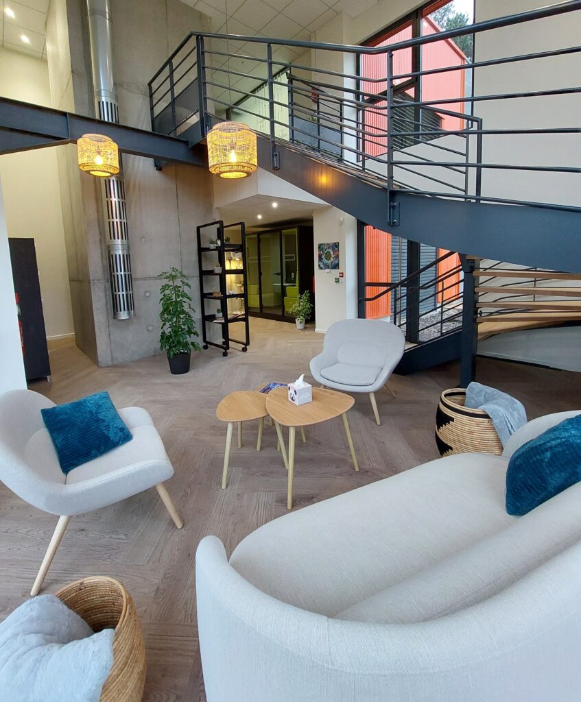 Accès à la salle de restauration, espaces détente : terrasses, jardin d’hiver